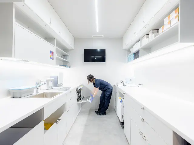 当院は治療器具の消毒・滅菌に非常に力を入れて取り組んでおります。安心を「見える化」できるよう、患者様から見える場所に消毒室を設置しました。当院にお越しの際はぜひチェックいただければと思います。