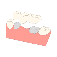 失った歯の本数が少なく、両隣の歯が健康な場合にはブリッジという治療方法があります。
