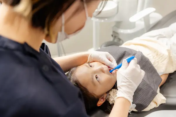 例えば、冷たいものを飲んだ時に痛みがある場合にはしみ止めのお薬を塗布して症状を緩和します。